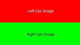 The two images are placed within a single frame divided in two parts vertically. The left eye image occupies the top half as the right one represents in the bottom half. If you load the video file in a normal (non-3D) video player you will see a picture similar to the one on the left. |