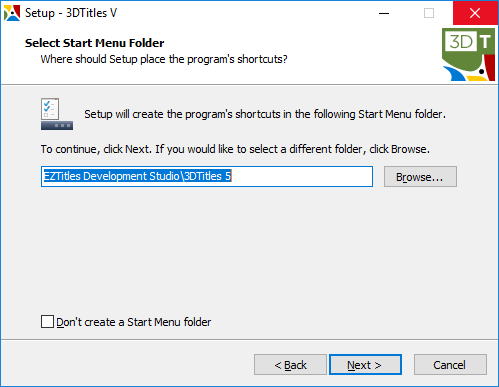Afterwards you'll be asked to specify the Start Menu folder where the program will create and place its help and uninstall shortcuts. You can also skip this folder creation by checking the "Don't create a Start Menu folder" checkbox.