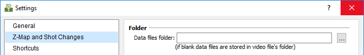 The default location for these data files is the video file's folder but you can change it here by specifying a folder of your choice. The two data files will be called as the video file you are working with followed by "~zmap.dat" and "~shots.dat" suffixes.