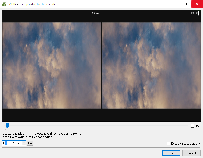 The Enable timecode breaks feature is provided in case the timecode in the video file is not continuous. This could be caused if a few episodes are recorded on the same tape, there are dropped frames, etc. When this option is selected, the layout of the setup timecode window will change for a few new buttons to appear.