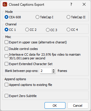 Enables the use of characters from the Line 21 extended character list set. Appropriate error message will be displayed on export if there were extended characters but the option wasn't switched on. |