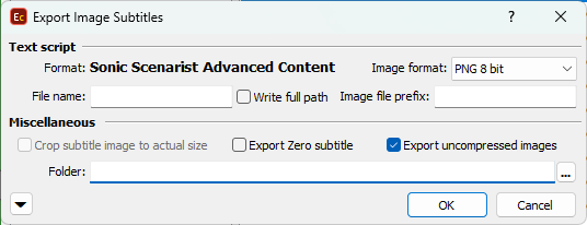 << Click to Display Table of Contents >> Navigation: Export Subtitles > Image Export Formats > Sonic Scenarist Advanced Content |