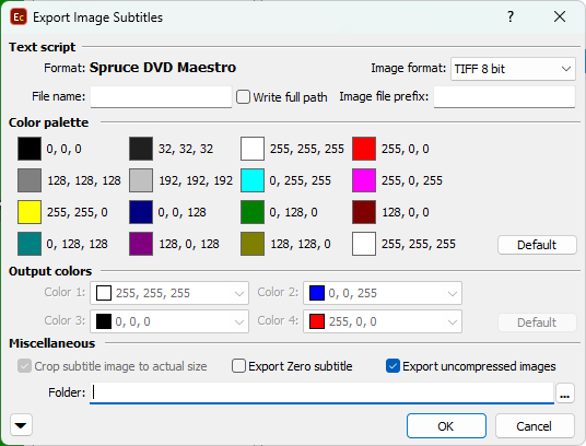 << Click to Display Table of Contents >> Navigation: Export Subtitles > Image Export Formats > Spruce DVD Maestro |