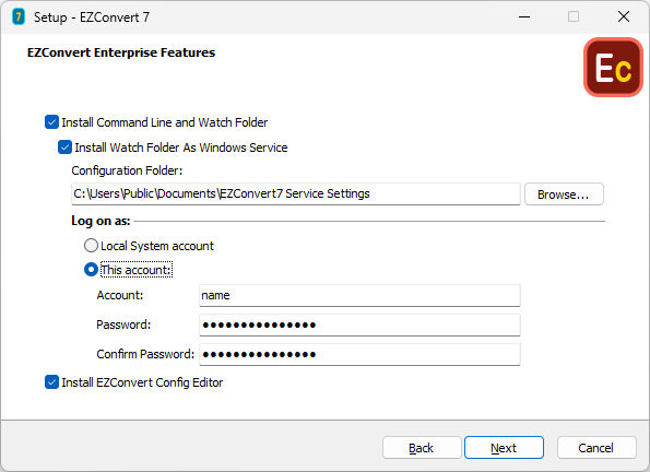 EZConvert Config Editor can be installed as a stand-alone application by clicking the respective checkbox, it doesn't require license for EZConvert.