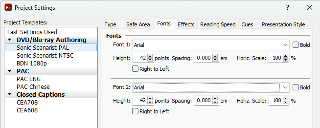 << Click to Display Table of Contents >> Navigation: Configuring Project Settings > Project Settings > Fonts > Digital Cinema projects |