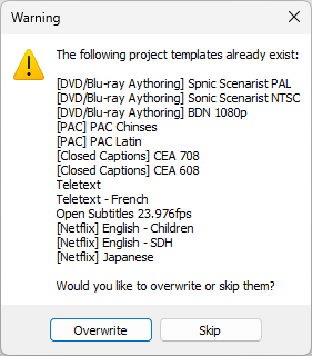 After that you can click on the Import and all listed templates will be imported. If you already have a template that matches the name of one of the imported templates, EZConvert will ask you to overwrite/update it or not: