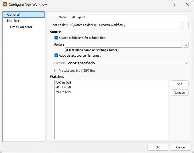Here you can add or remove the Watch Folders involved with this Workflow.