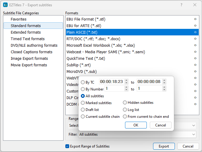 Export range of subtitles