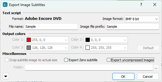 << Click to Display Table of Contents >> Navigation: Export Subtitles > Image Export Formats > Adobe Encode DVD |