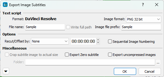 << Click to Display Table of Contents >> Navigation: Export Subtitles > Image Export Formats > DaVinci Resolve |