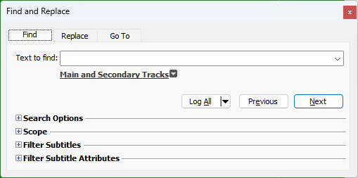 Find & Replace will be invoked only for the subtitles that are currently logged in the Log List. |