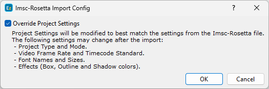 Importing and Imsc-Rosetta file in EZTitles offers a single configuration option: