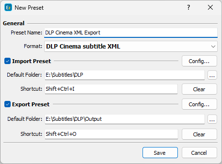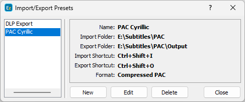 EZTitles allows you to configure import or export presets for each of the supported file formats so you don’t need to check the settings each time you import or export a file.