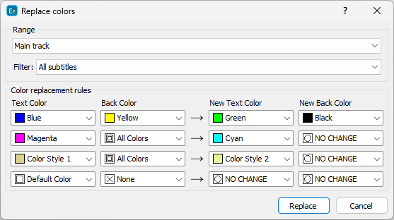 << Click to Display Table of Contents >> Navigation: Global Subtitle & Timecode Operations > Replace Colors |