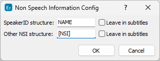 The Non-speech Information options are available only when “Align loaded text to audio” is enabled. The script’s text is searched for character names, sound effects, on-screen text and any other additional descriptive information not included in the spoken dialogue. Then you can decide if they should remain in the final version of the subtitles.